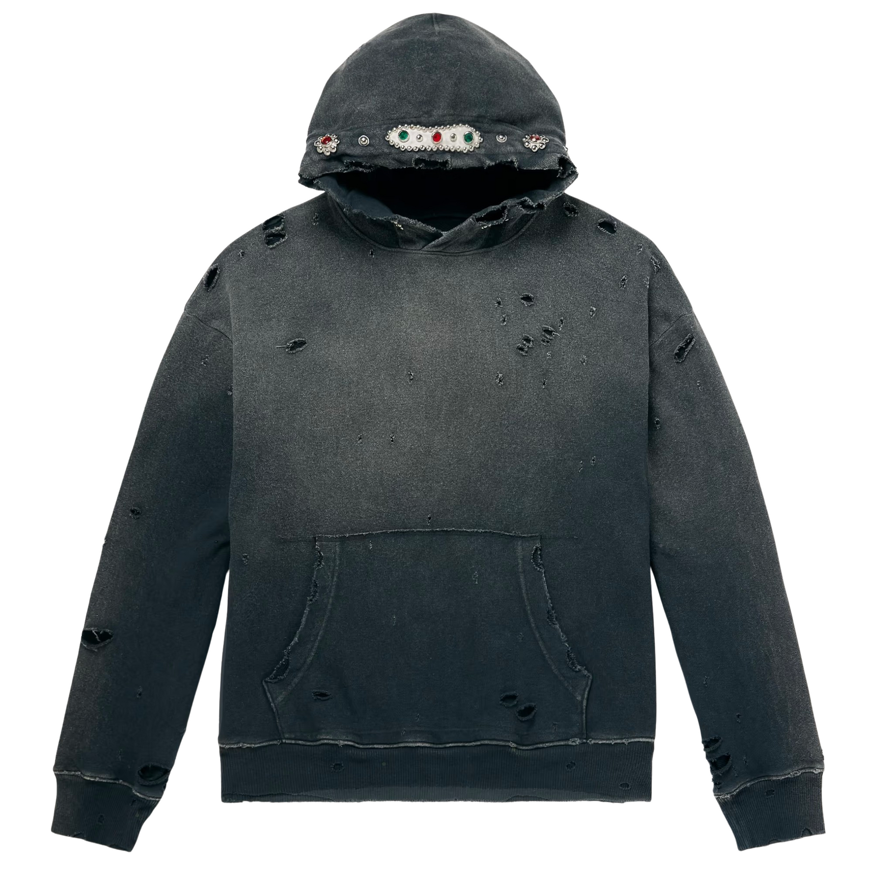 Kapital Thriller Damaged 'Washed Black' Studded Hoodie - 4872AB73