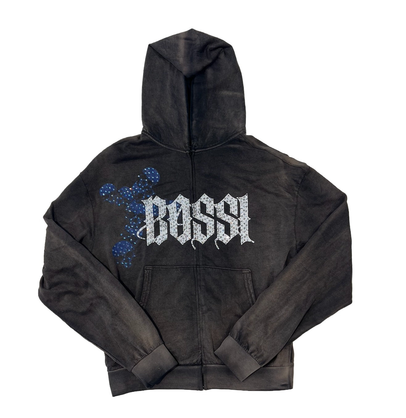 Bossi 'Blue Skull' Faded Wash Zip-Up Hoodie
