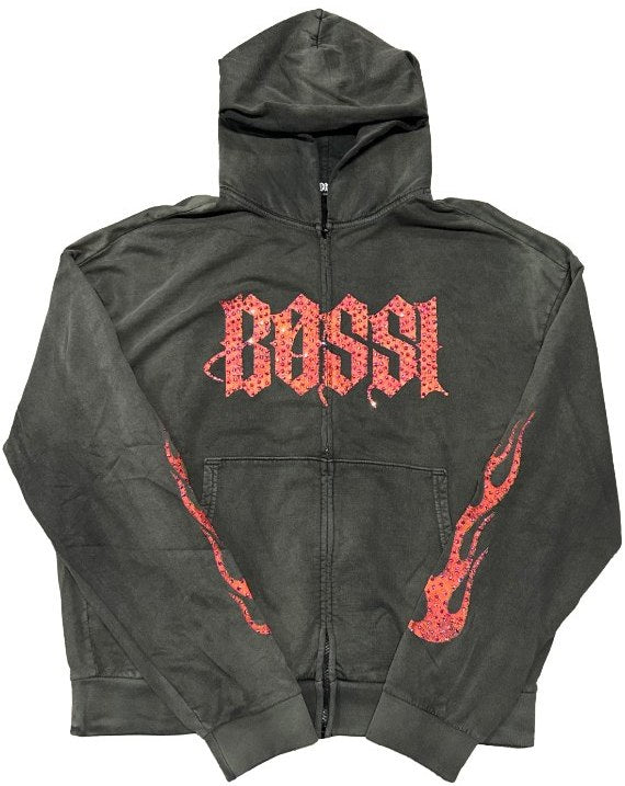 Bossi 'Red Flame' Black Fade Zip Up Hoodie